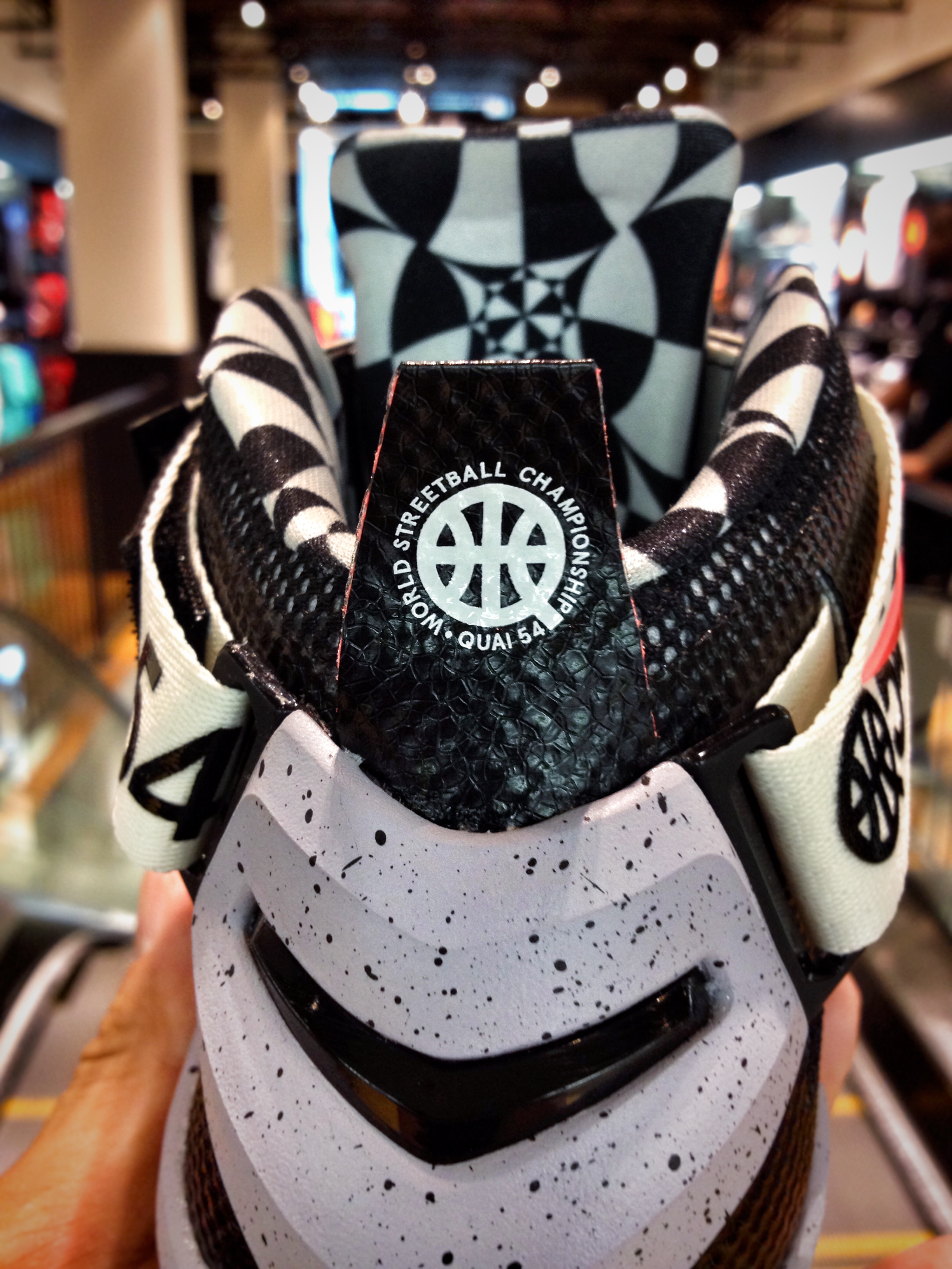 Every year thousands of basketball fans attend the Quai 54 World Streetball Championship sponsored by Nike | Jordan Brand in Paris France. If you are like me, the closest I ever get to this basketball showcase is mouse-clicking links to profound photos of the event. Stepping into the House of Hoops Montreal today, I was enthusiastically surprised to see the Nike Zoom LeBron Soldier 9 Quai 54 on display! I flashed back to the previous Quai 54 sneakers and I could not recall any that were available outside of Europe. Basketball geekdom and limited edition fiending aside, this shoe is actually a choice performance shoe as are all versions of the Soldier line. Aesthetically, I am a fan of darker shoes for the court, the placement of the contrasting white straps also adds this asymmetrical aspect to the sneaker promoting a sense of movement as you stare at bold wiring under the mesh-like upper.