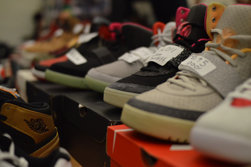 The space itself was relatively small, it was located in a gymnasium and was no larger than a half-sized basketball court. The lack of ventilation had positives and negatives. Negative in the sense that everyone was sweating like a whore in church. Positive for the clothing vendors, though, because everyone needed new shirts once theirs was drenched with perspiration. The smaller size of the venue meant that there was no empty vendor slots, and shoes lined the perimeter and the interior of the space.