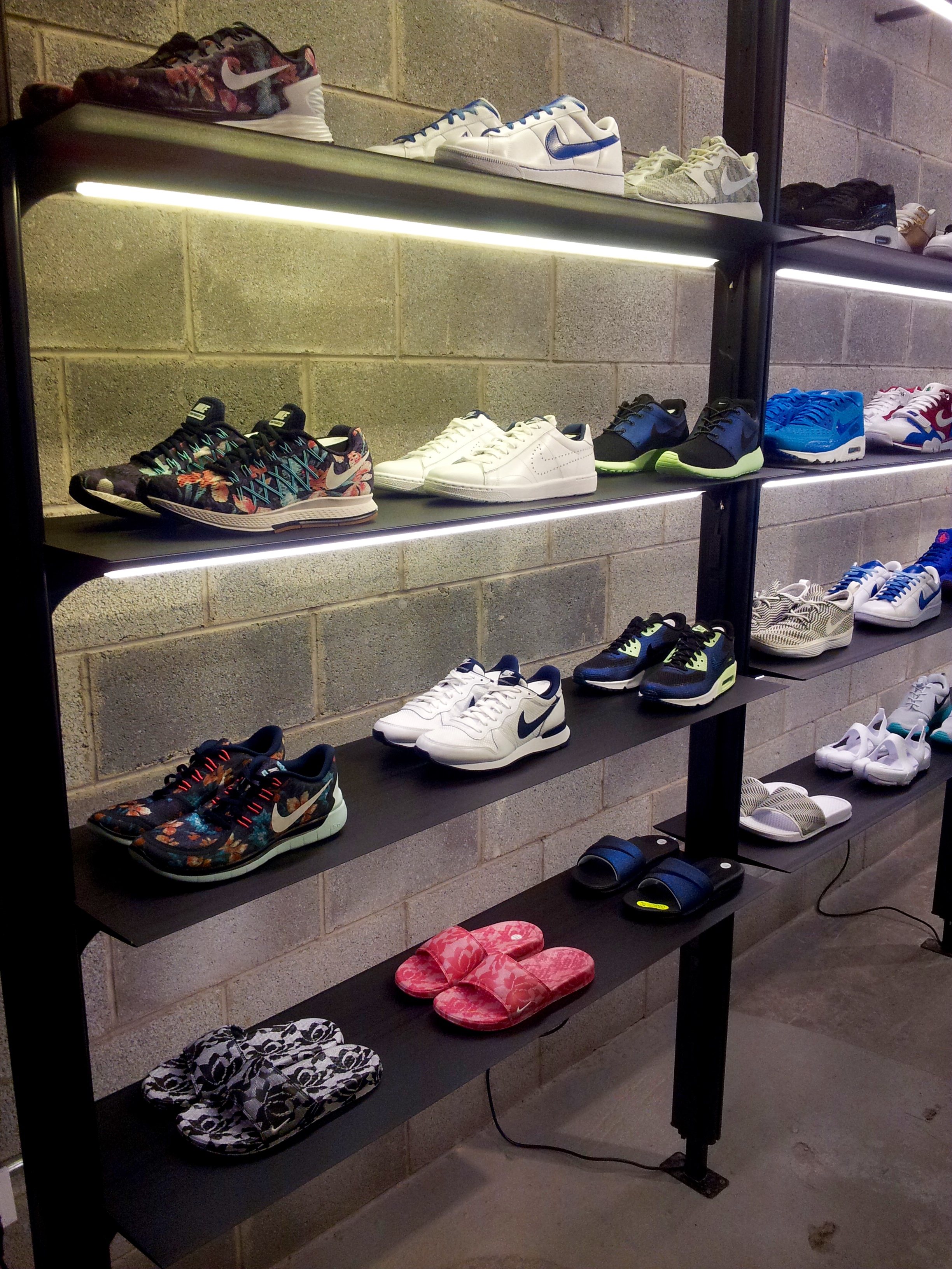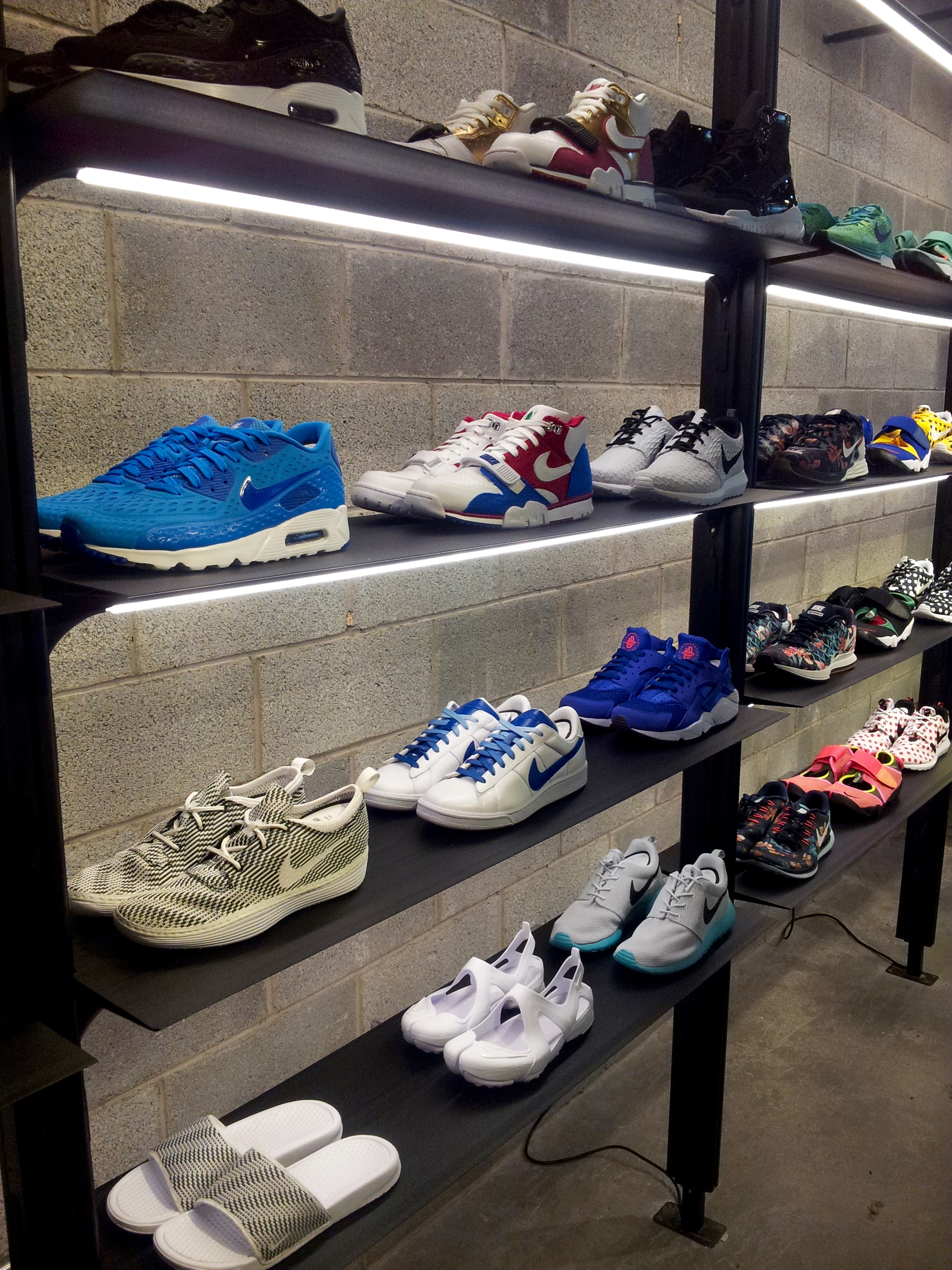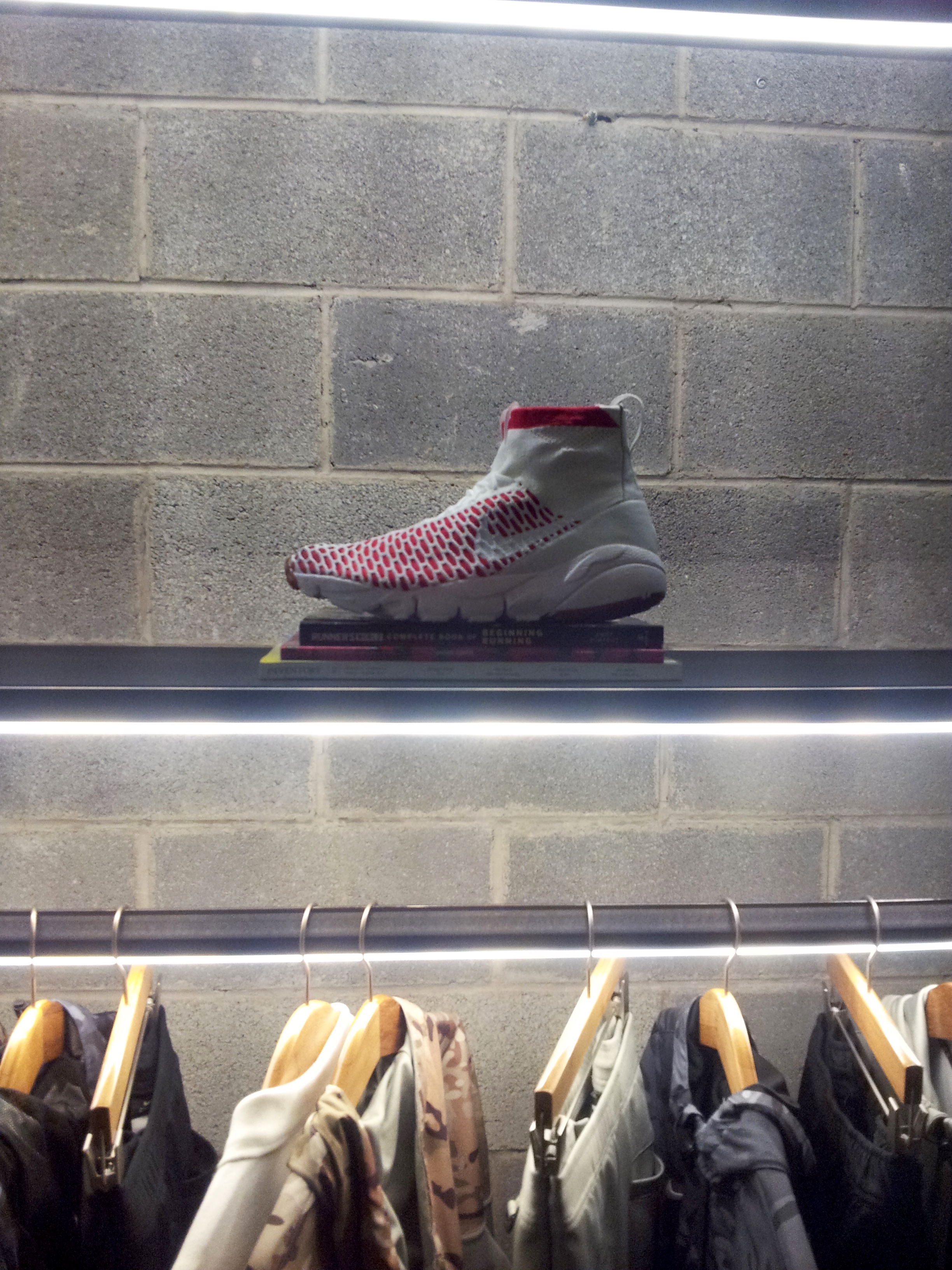 The first few things that I noticed were the sneaker wall and the main visual with the sacai collaboration Dunks on display. The sneaker wall had a good variety with Tennis Classics, Roshe Runs, Air Maxes, Air Trainers, Huaraches, Flyknit Racers, Air Force 1’s and more. Directly beside the sneaker wall was a NikeID station with two computers and multiple variations of NikeID LeBron 12’s & Air Force 1’s on display on top of the computers. The clothing walls and racks were lined with more limited Nike products including the made in Italy White Label line as well as Nike’s collaboration line with Japanese brand SOPHNET, F.C. Real Bristol (FCRB). While I was browsing through the clothing section, I stumbled upon a few pairs of the Air Footscape Magista Tournament Pack in the Netherlands and England colourways and of course they were out of stock in my size. I ended up grabbing a light jacket from the FCRB line so that I don’t leave empty handed and I also asked on a long shot if they had any pairs of the Free TR 5.0 V6’s that released a month or two prior that were exclusive to NikeLab X158, but no luck as well.