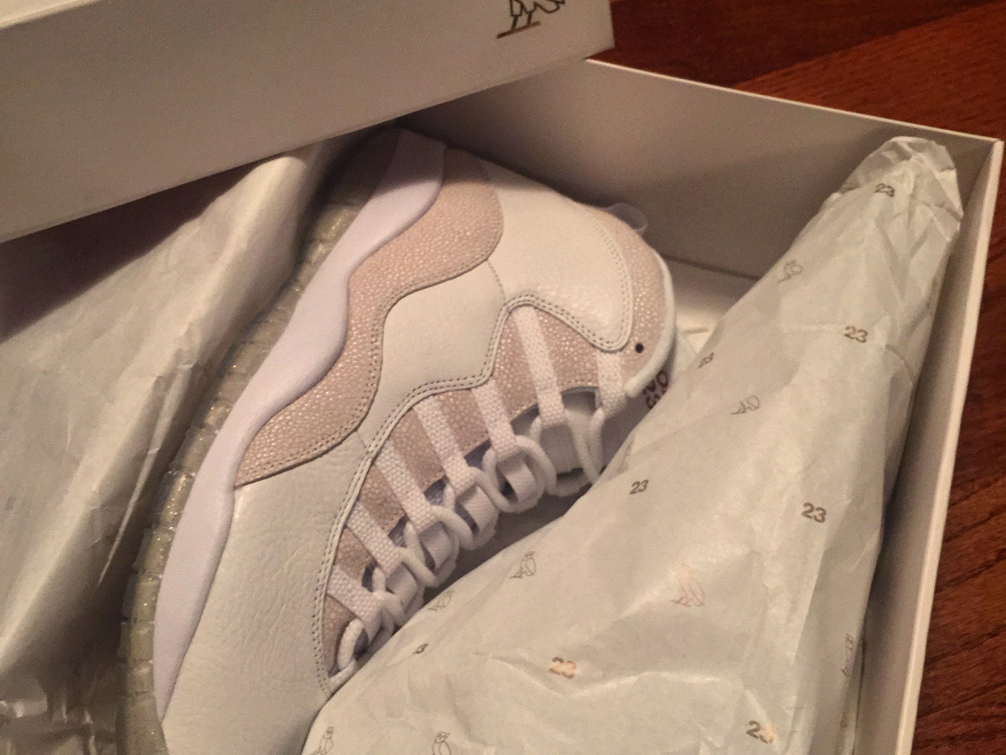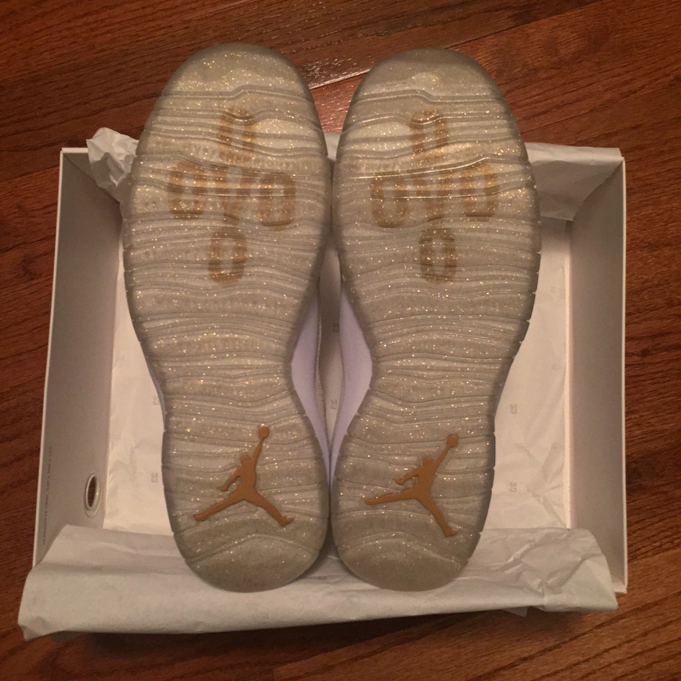 The shoe itself features stingray trim around most of the silhouette. “OVO” branding is found on the clear, gold-speckled sole; which stays true to a regular Air Jordan 10, listing the GOAT’s accomplishments down the length of the sole. The insole has a printed OVO owl on the heel portion, which looks like it will chip away after one sweaty day running through the 6ix.