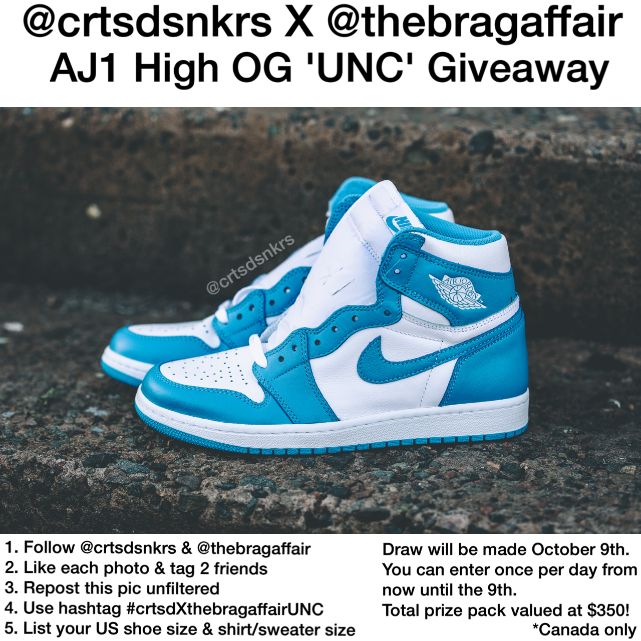 1. Follow both @crtsdsnkrs and @thebragaffair on Instagram.