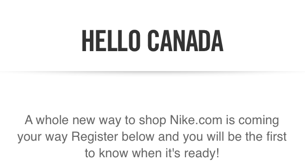The time has come for us to sign up for that faster internet and to make sure the mouse clicker’s response time is up to speed. You can now sign up to receive information about Nike Canada Online launch news. Those signed up to a spot might be privy to some early access? Some advance notice? Who knows?