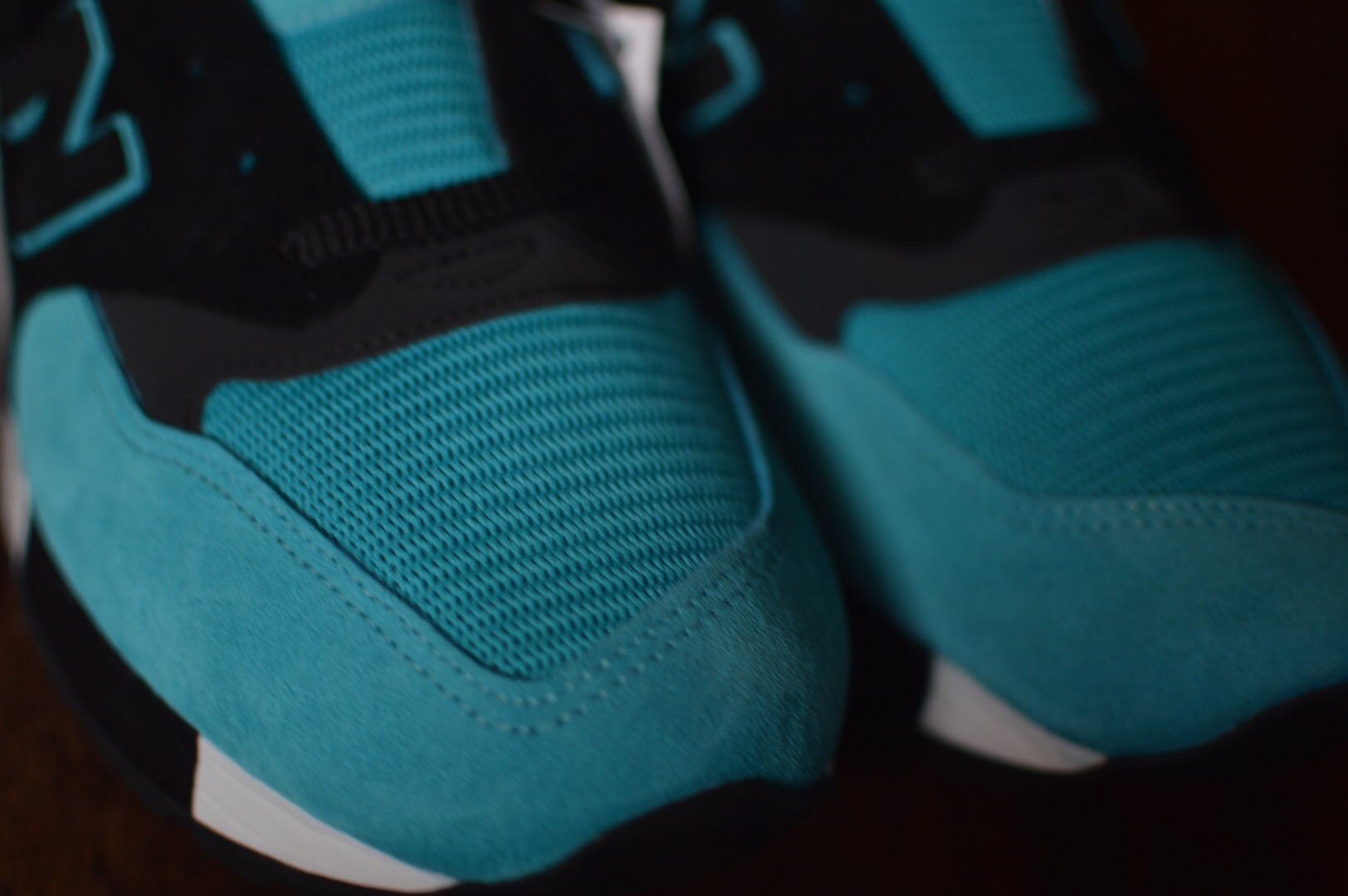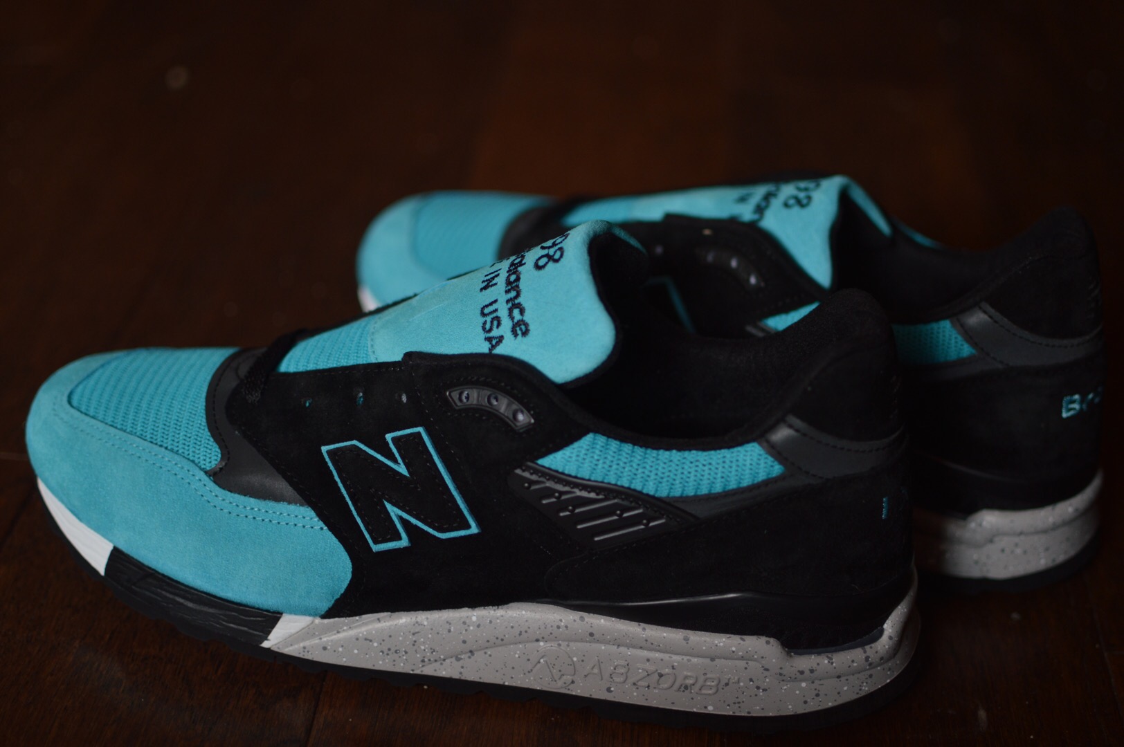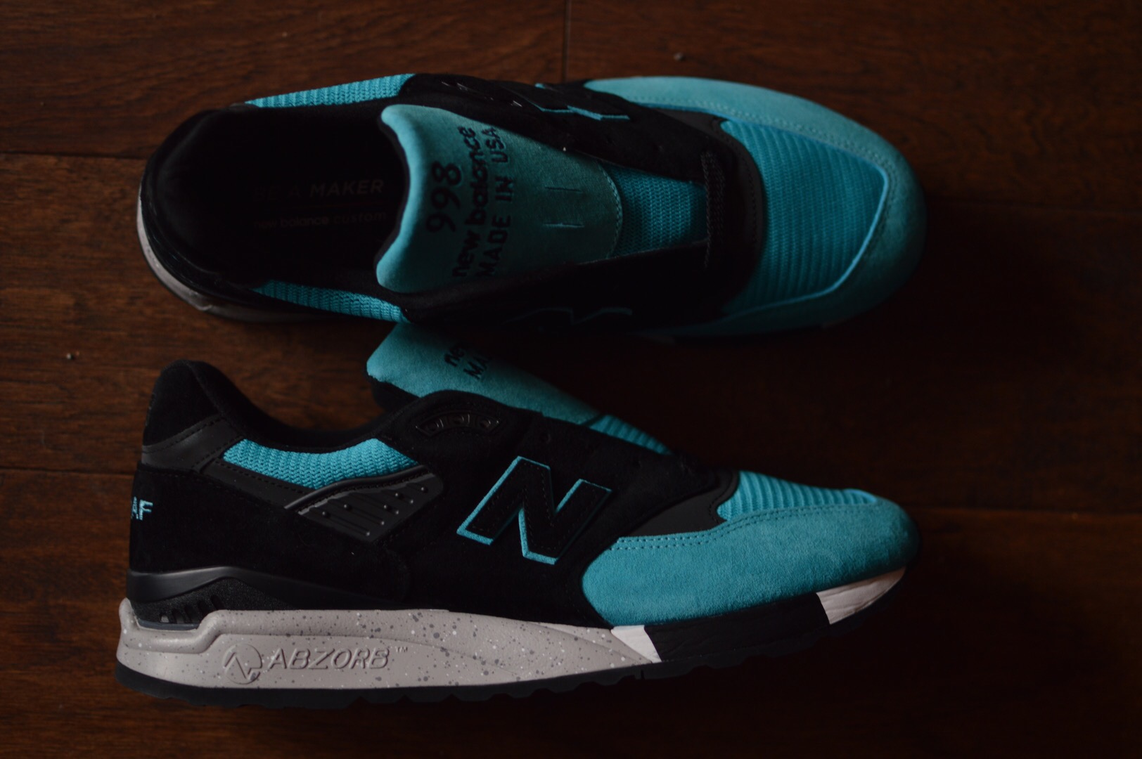 Lacking a leather option [Edit: now featuring Horween leather & Herringbone twill option. *A single tear rolls down my cheek] I went full suede except for the ankle collar and toe-box, though the toe is also wrapped in suede, I also used black 3M hits to compliment the black suede and chose Sea Glass as my other colour sitting on top of the speckled Abzorb midsole.