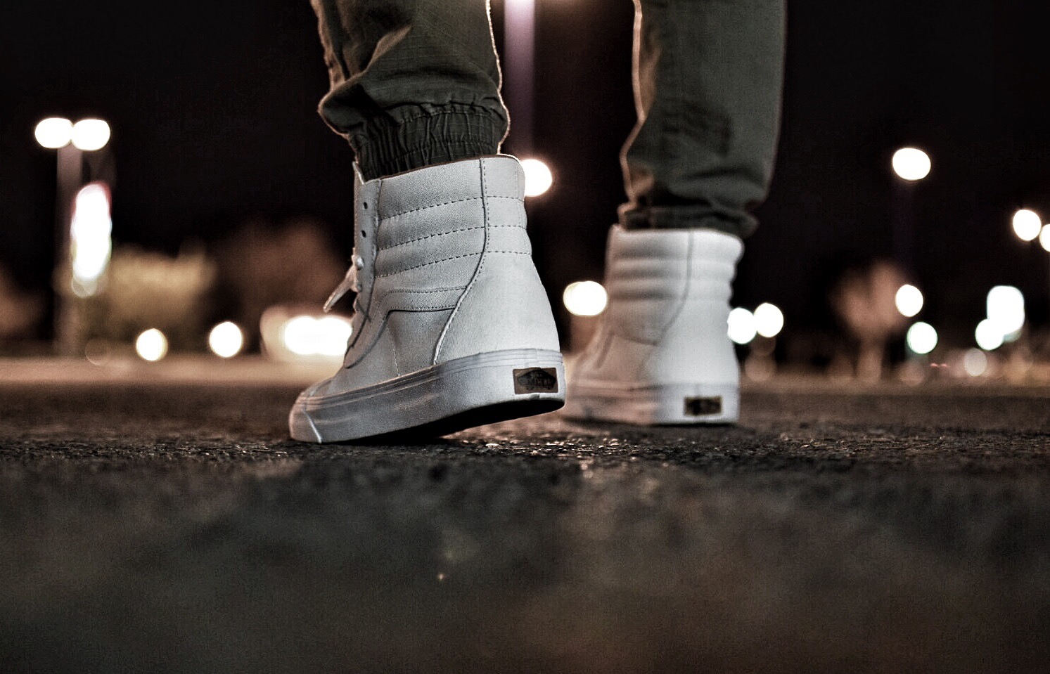 After going through five pairs of shoes, I finally found the pair that flowed with my outfit. It was about time I unDS these badboys. As I was lacing them up I kept thinking “How am I going to shoot these?” With it being a sunny day, shooting these white Vans wasn’t going to be easy. The sun would reflect so hard that I wouldn’t be able to see any detail on the shoe. At work I kept looking outside hoping a patch of clouds would give me an opportunity to go take some snaps. Unfortunately that chance never came up. Finally after work I found a spot with some shade. I took a couple of shots but none of them really did the shoe justice so I couldn’t settle with one of these. Once the kids were down I had to go back out to get that money shot. I wasn’t sure what I was going to end up with since I never took pictures at night. I have to say that this shot surpassed my expectations.