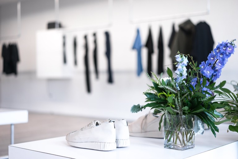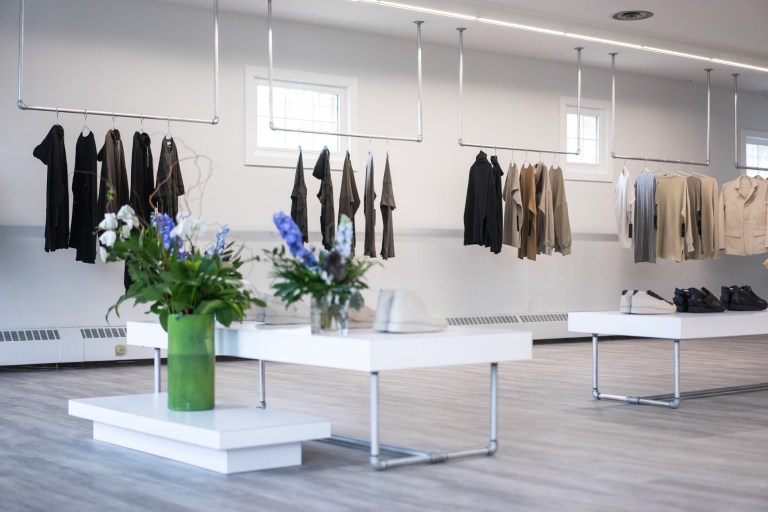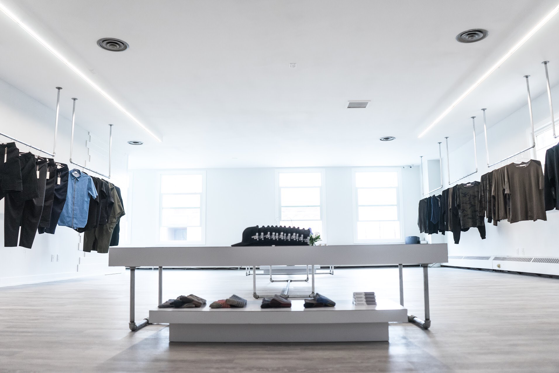 From the logo design to the interior design and display, it is as minimal as possible, hidden doors for both office and fitting room; in the reception area you will only find a iPad and a credit card machine; with more than 90% of people using cards for shopping nowadays and keeping with the minimal theme you won’t even find a cash drawer, they are also the first clothing store in Edmonton that officially supports Apple Pay. ANNMS believes minimalism simplifies the shopping experience and allows customers to focus on their products.