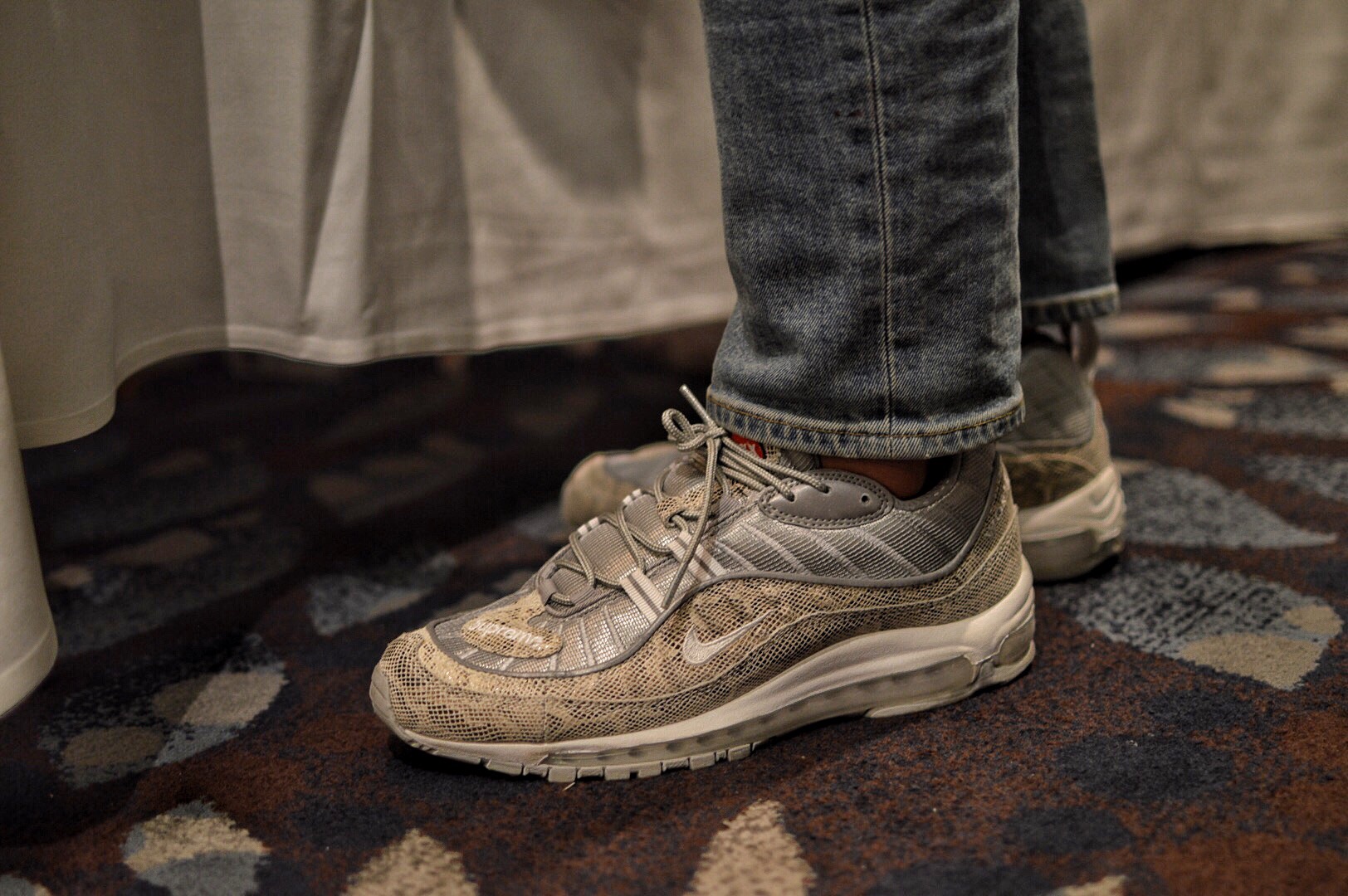 That doesn’t mean there wasn’t plenty of other heat on feet though, Puma, Ye’s crepe boot and Jordan Brand had a heavy hand in what patrons wore, but the pair that took the title in my opinion was Sole Good’s own Ke breaking necks with the Clot x Nike ‘Kiss of Death’ AM’s.
