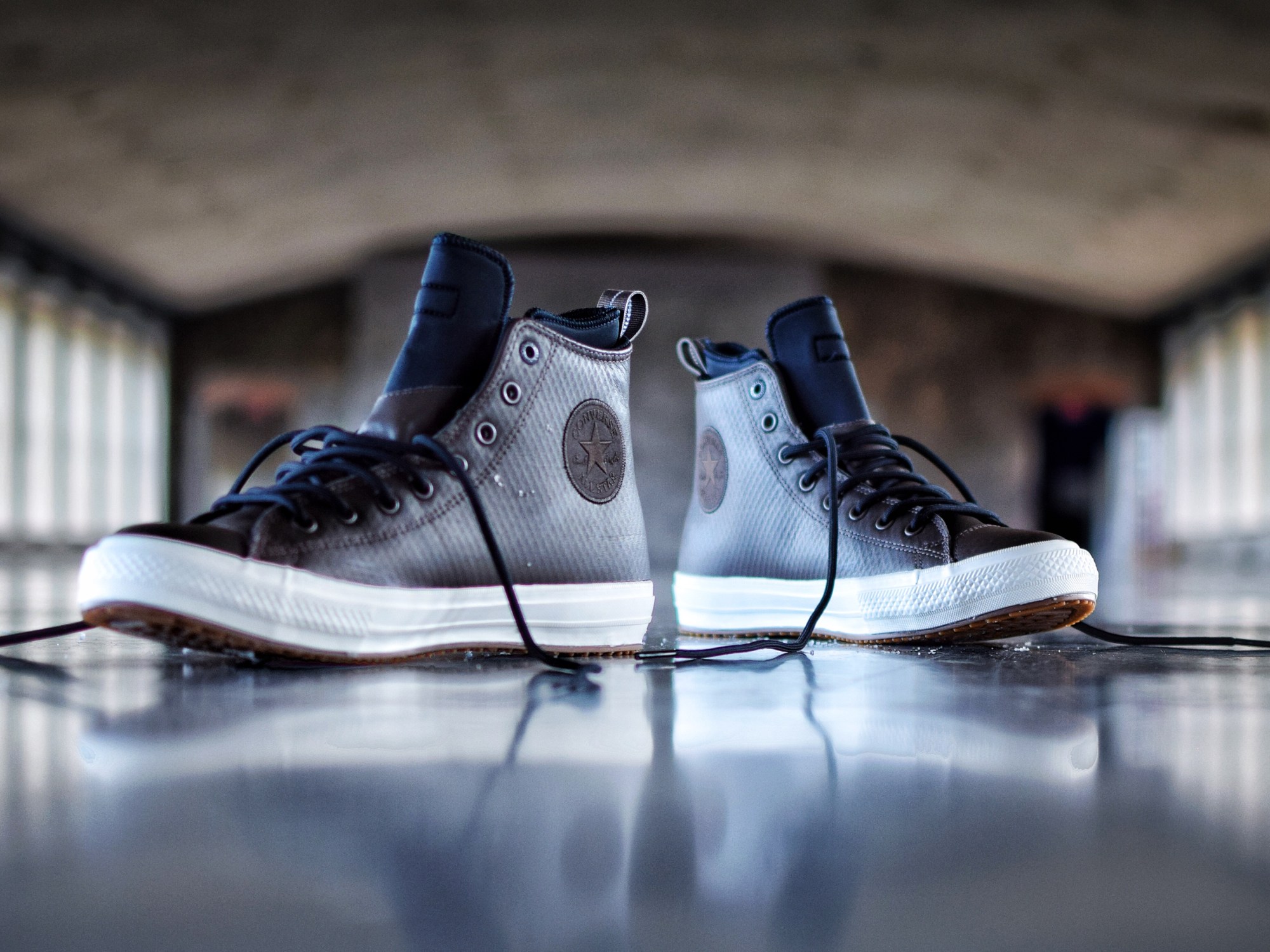 You want to talk tech? Let’s do it… The Converse Chuck Taylor All Star II Boot sports a premium, mesh-backed waterproof leather. Converse’s first waterproof sneaker boot crafted to help keep feet warm and dry in harsh winter conditions while maintaining the classic Chuck Taylor look and feel. A waterproof bootie construction with a neoprene collar and heel pull are included to help keep water completely out of the boot while a 360-degree heat barrier helps keep feet warm. The boot also features a rugged, post-applied weatherized gum outsole with deep grooves for better traction and a Nike Lunarlon foot bed for enhanced cushioning.
