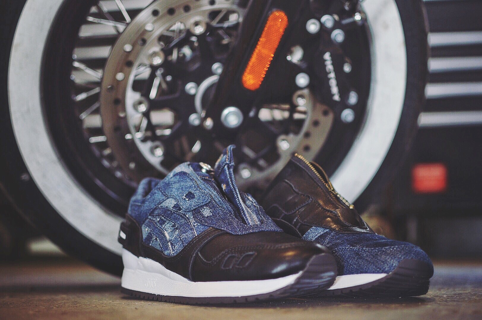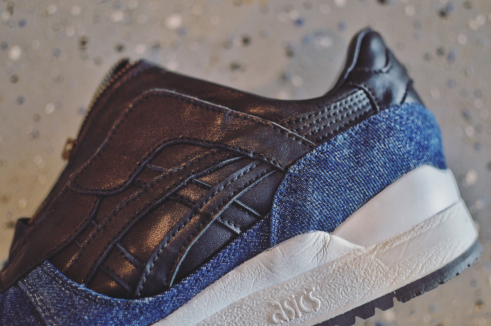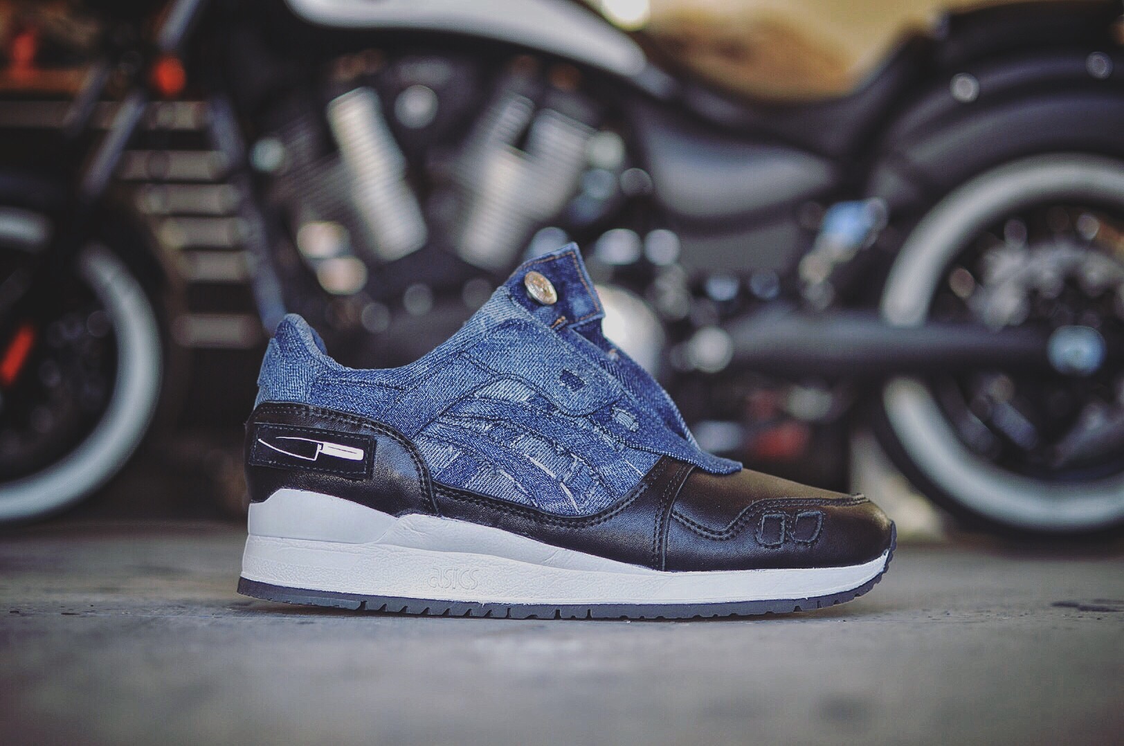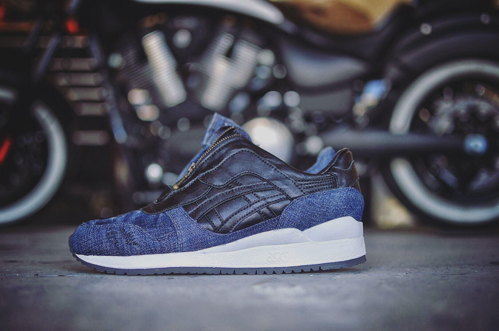 I wanted to see the pair dressed in denim with a black leather toe, inspired by the classic biker look of Black Leather & Blue Jeans, but the thing that separated them from any other GL3 is that I wanted the split tongue to have a zipper, something no one had ever done, a subtle but extremely noticeable difference. J hit me with a few mock ups and renditions and the ones I liked best was when he brought the leather from toe to heel along the bottom portion of the sneaker, but the problem was he also included a denim toe to heel rendition and I couldn’t figure out which I liked more, so we decided to do both.