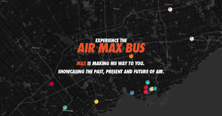 To celebrate the 30th anniversary of the Air Max, the city of Toronto has been blessed with a two-storied bus dedicated to the Air Max that will be touring the city throughout the month of March. The bus is wrapped to resemble an original Nike box that the Air Max came in, and the front of the bus beautifully sums up its intention: “30 Years of Air”. This month has been rightfully deemed Air Max Month, and the Air Max Bus is one of the numerous celebrations leading up to the annually celebrated Air Max Day.