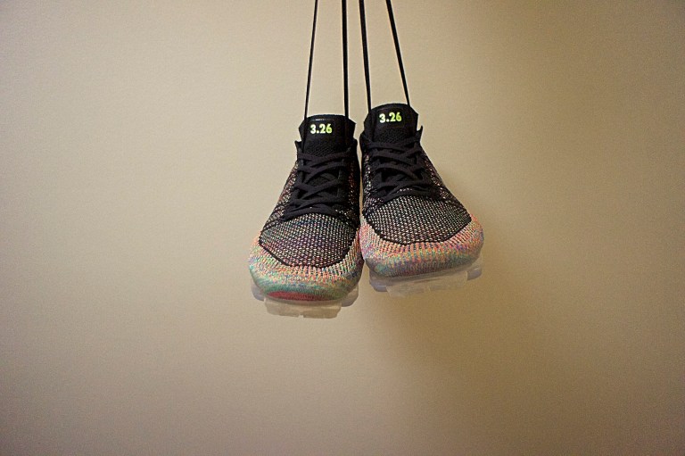 On Friday afternoon before Air Max Day 2017, I received an unexpected package from the good folks over at Nike Canada and before I even opened the box, I was beyond excited that my favourite brand had reached out to me (I would’ve been happy with a letter). When I began opening the box and removing the bubble wrap, I found a black NIKEiD box with no tags or stickers anywhere on the box, which made me even more curious to what it could possibly be. I opened the box and pulled back the tissue and immediately started noticing the multicolour Flyknit and the Air bottoms. I was absolutely in shock that they had sent me a pair of the “Air Max Day” VaporMax with the multicolour Flyknit and “3.26” tongue label NIKEiD options.