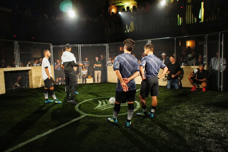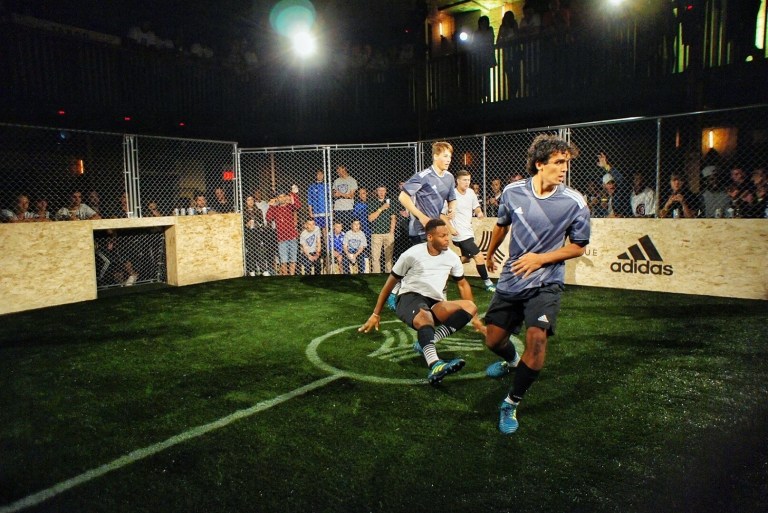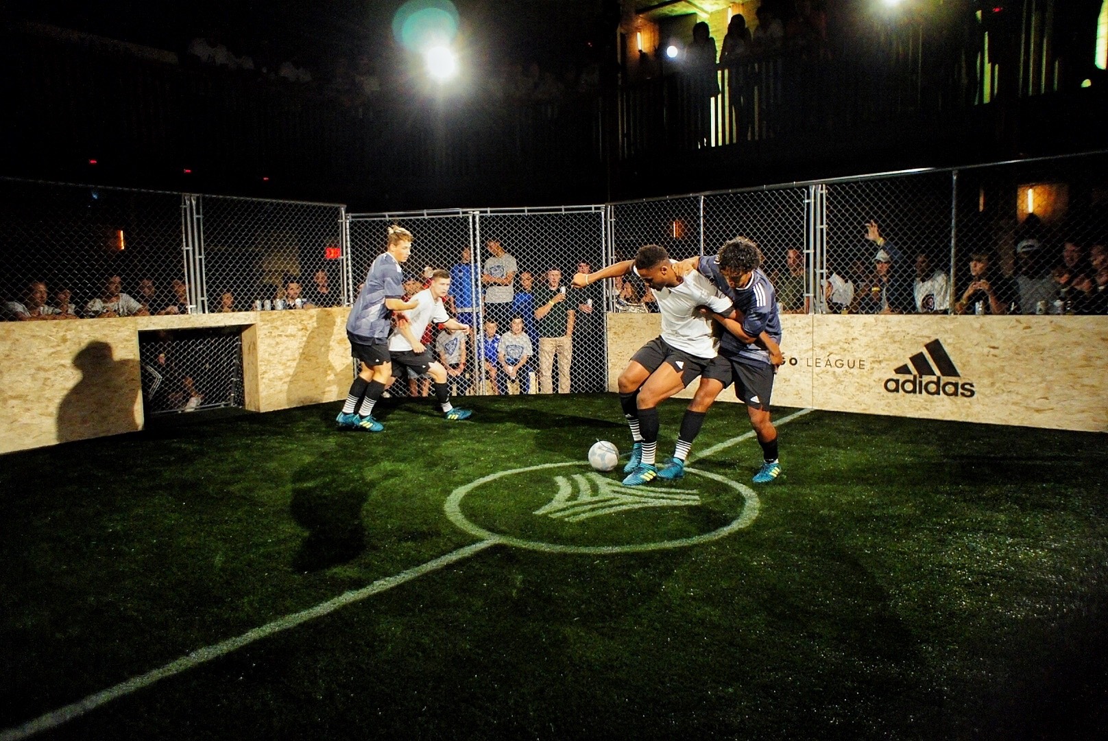 adidas Canada provided the city of Toronto with another exclusive event that is sure to please soccer fans, a 2 vs 2 indoor soccer tournament that is held at Longboat Hall on Queen Street West. The matches are held inside hall on a small artificial turf field that is enclosed by a cage. There are no goalies on either sides, and the objective is the same as any typical soccer match, score more goals than the opposing team. In the case of a tie, the crowd has the final say in determining the winner, so players tend to put on a show.