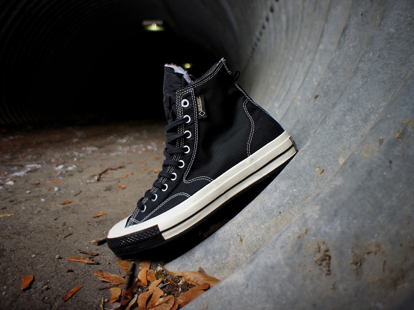 The collaborative project features premium apparel and footwear options that are inspired by convertible modular systems to deliver innovations with expressions of utility. The shoes from the collection, the Chuck ’70 Hiker, is inspired by the Yosemite Hiker from the 1970’s that was originally ‘rebuilt’ by stitching together old military pieces.